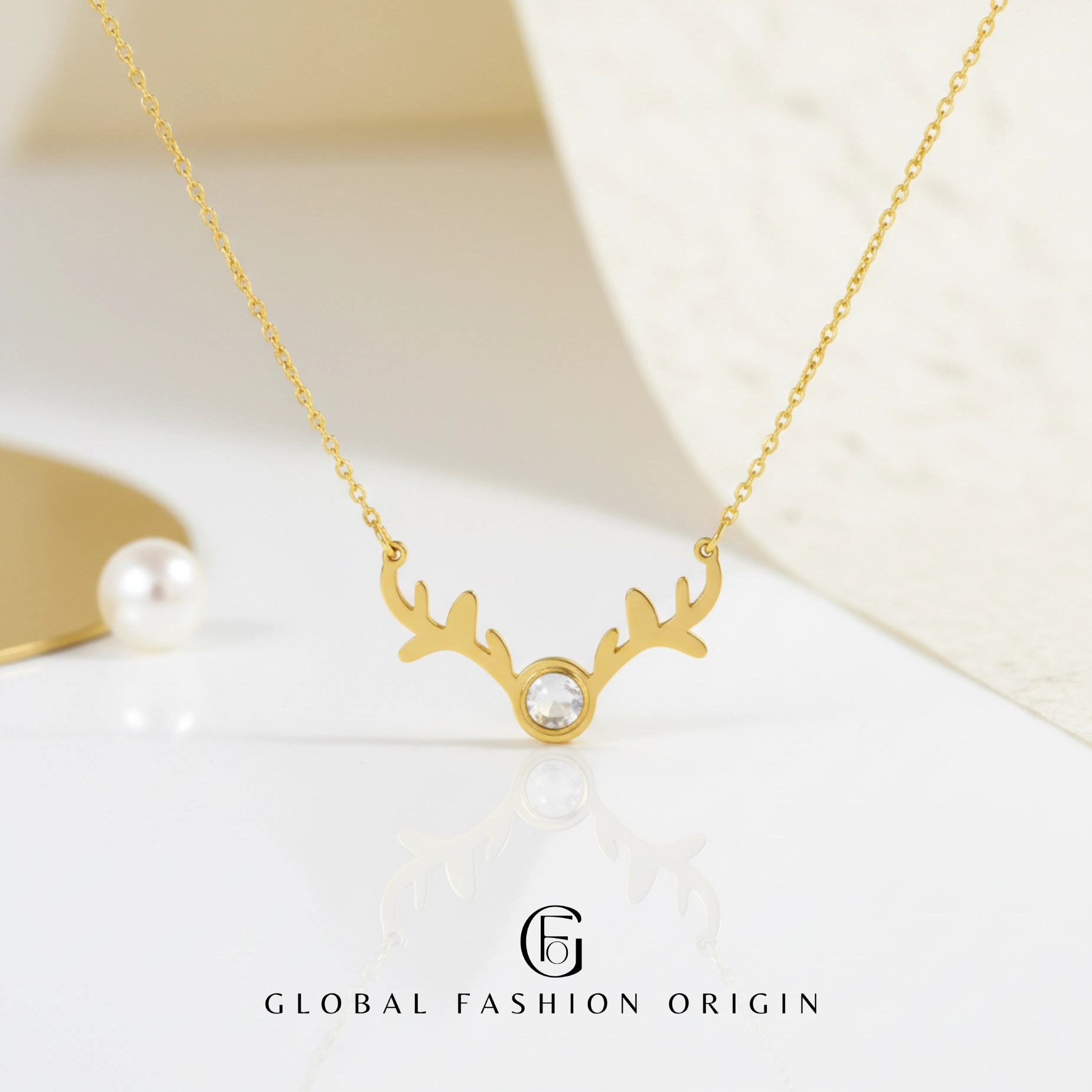 Inspired by the serene beauty of nature, the Aurora Antler Pearl Necklace by Global Fashion Origin is a statement of subtle sophistication. Its sleek antler-inspired silhouette is accented by a luminous central pearl, symbolizing purity and strength.