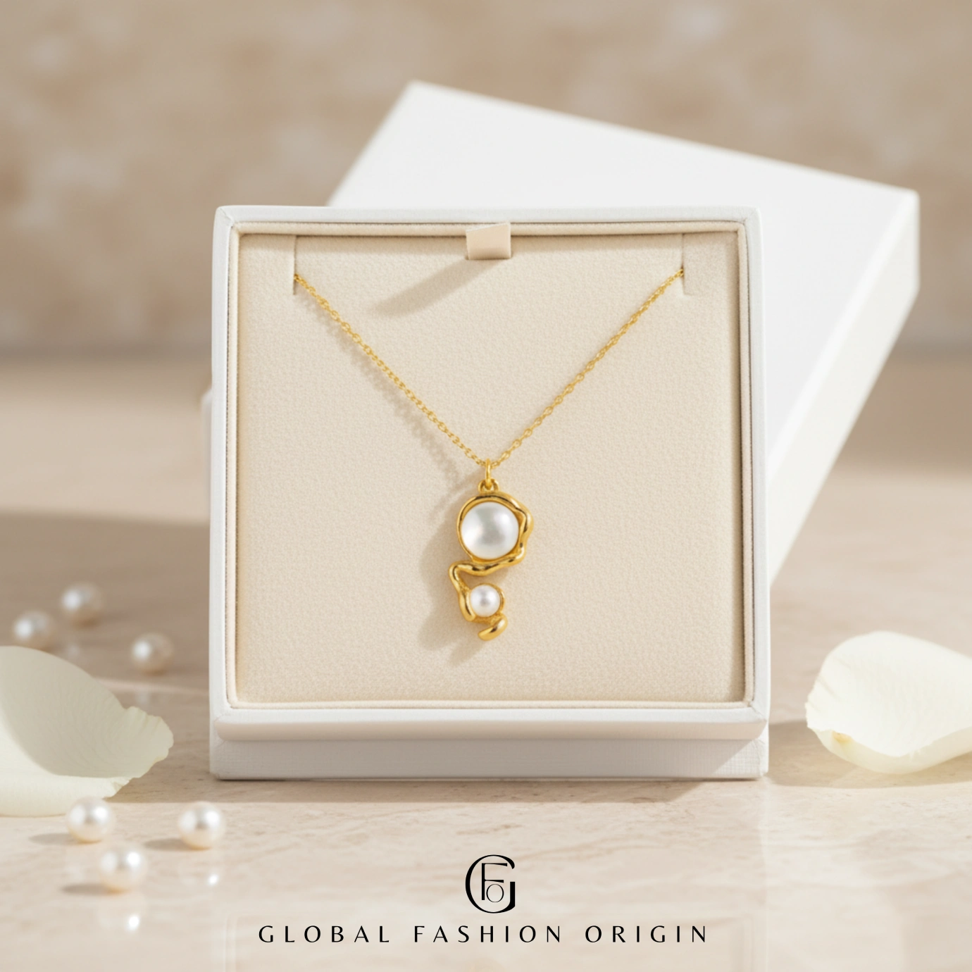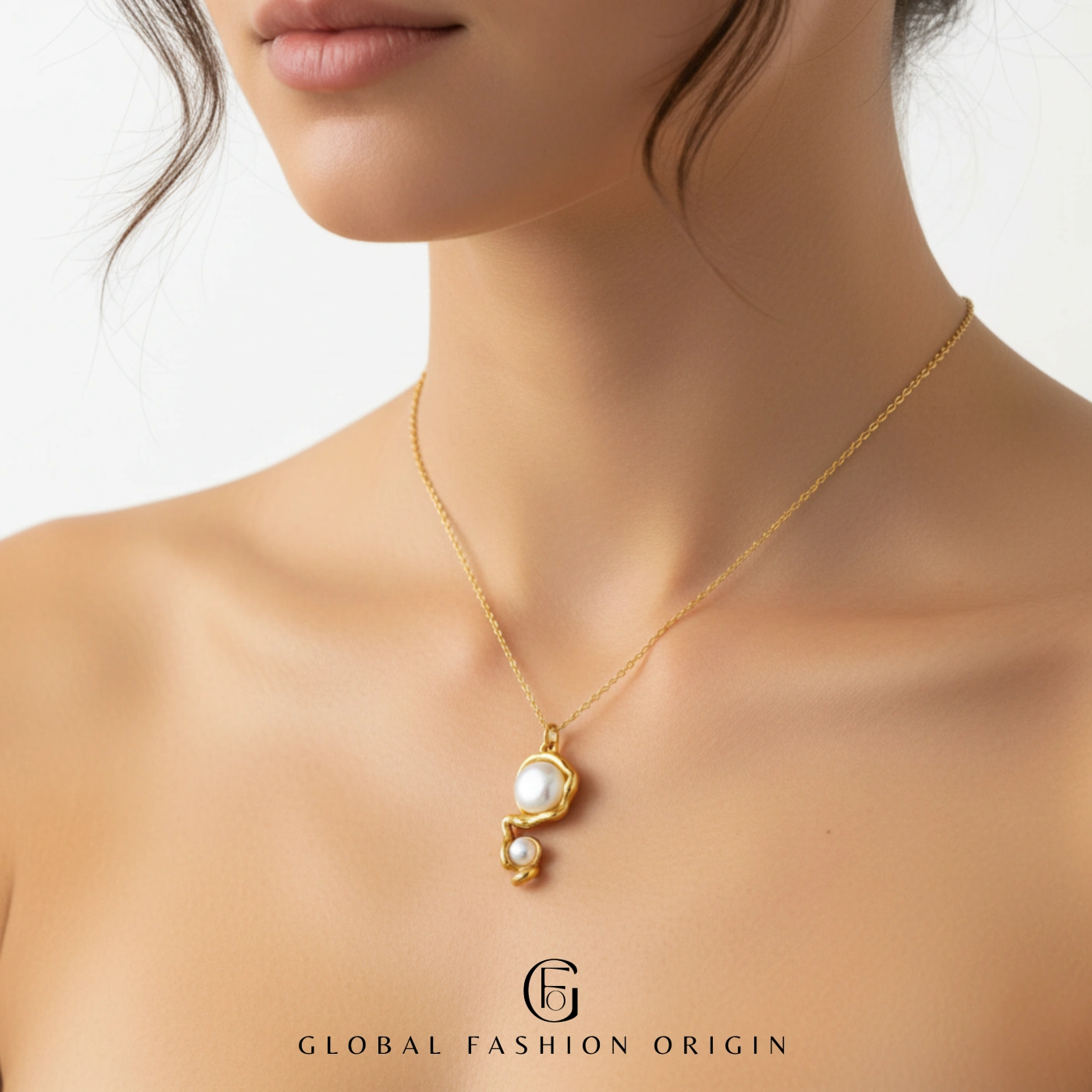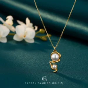 The Celeste Dual Pearl Necklace by Global Fashion Origin is where organic design meets timeless elegance.