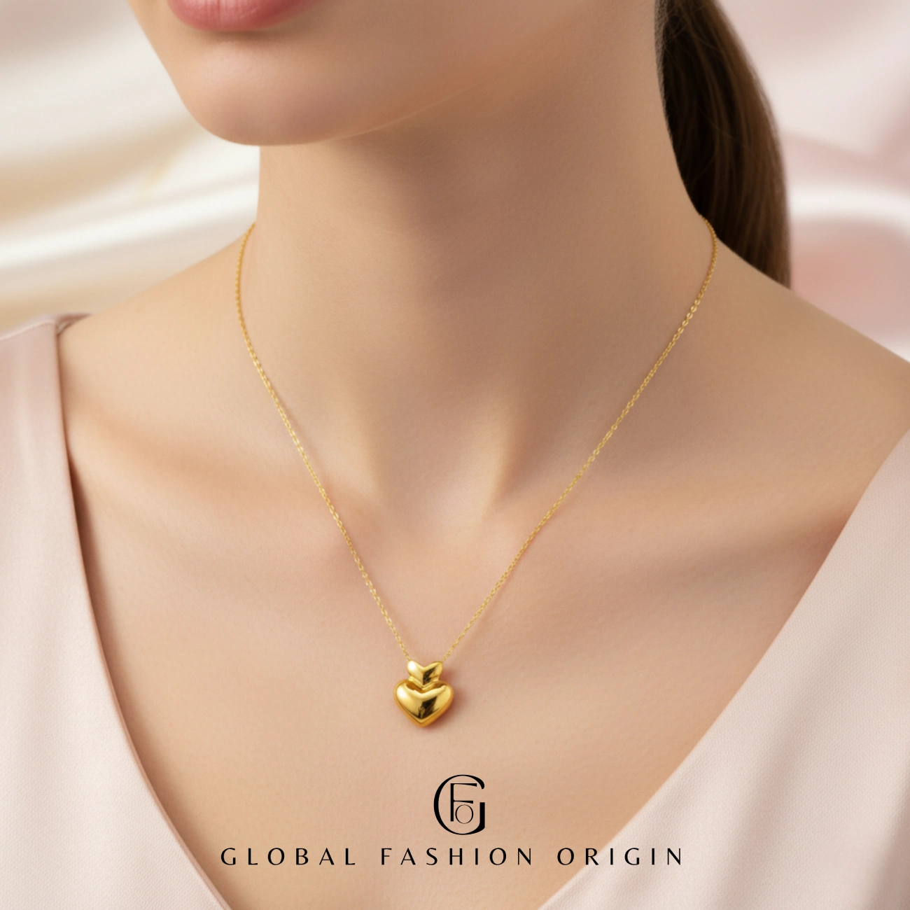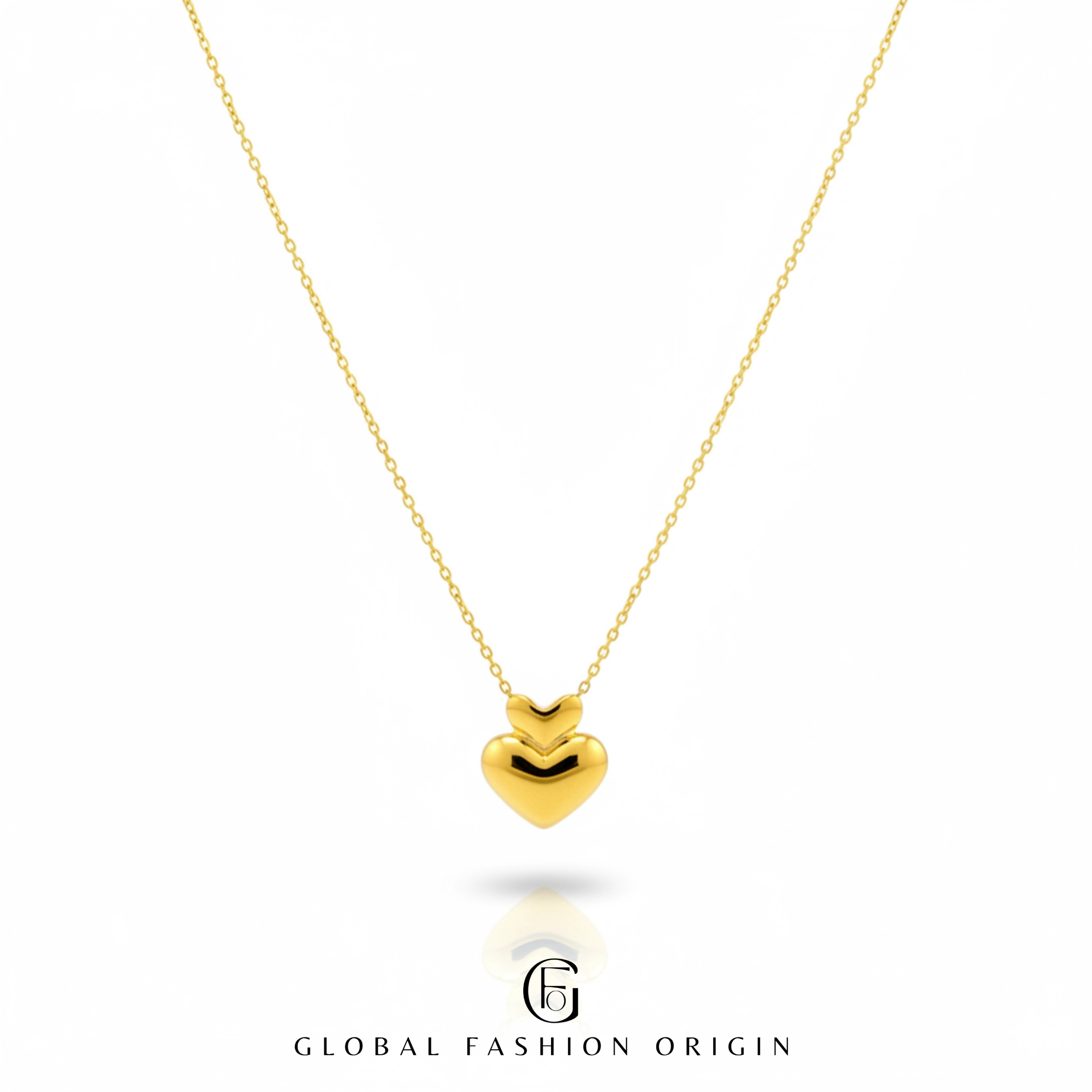 Embrace the essence of modern romance with our 18K Gold Plated Double Heart Pendant Necklace from the Eternal Glow Collection. Designed for the woman who embodies love, confidence, and sophistication, this necklace features two gracefully layered heart motifs — symbolizing deep connection and harmony.