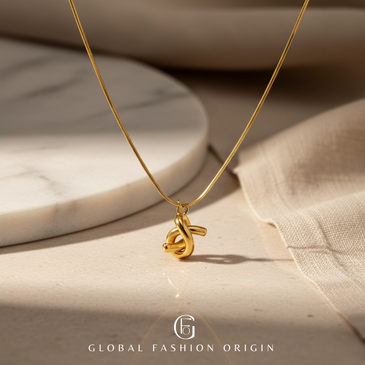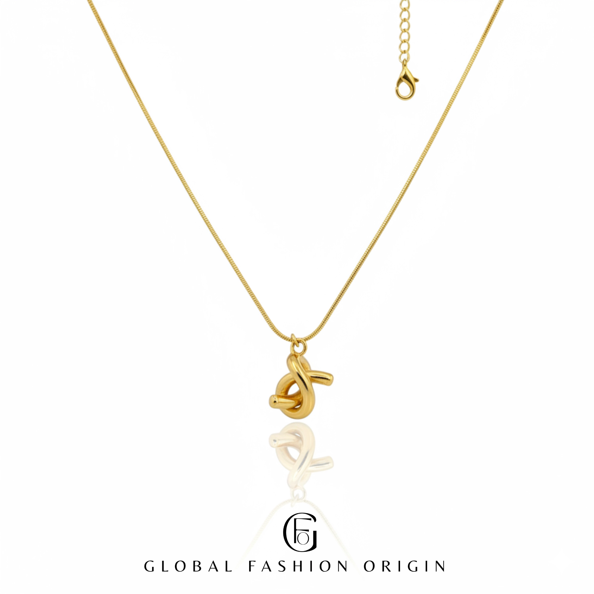 A chic 18K gold plated necklace featuring a knot-inspired pendant, designed with anti-tarnish technology for enduring shine. Elegant, versatile, and perfect for any occasion.